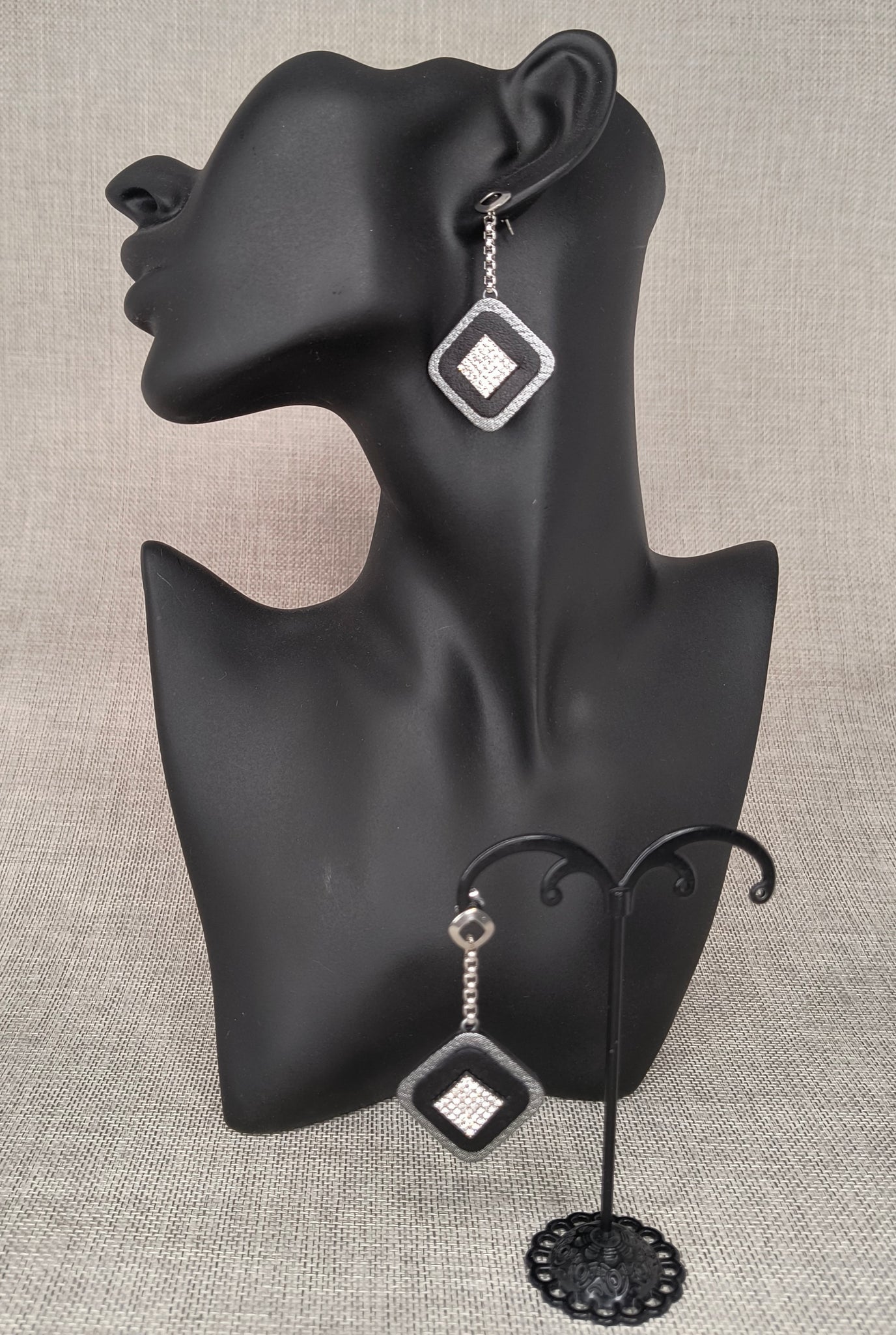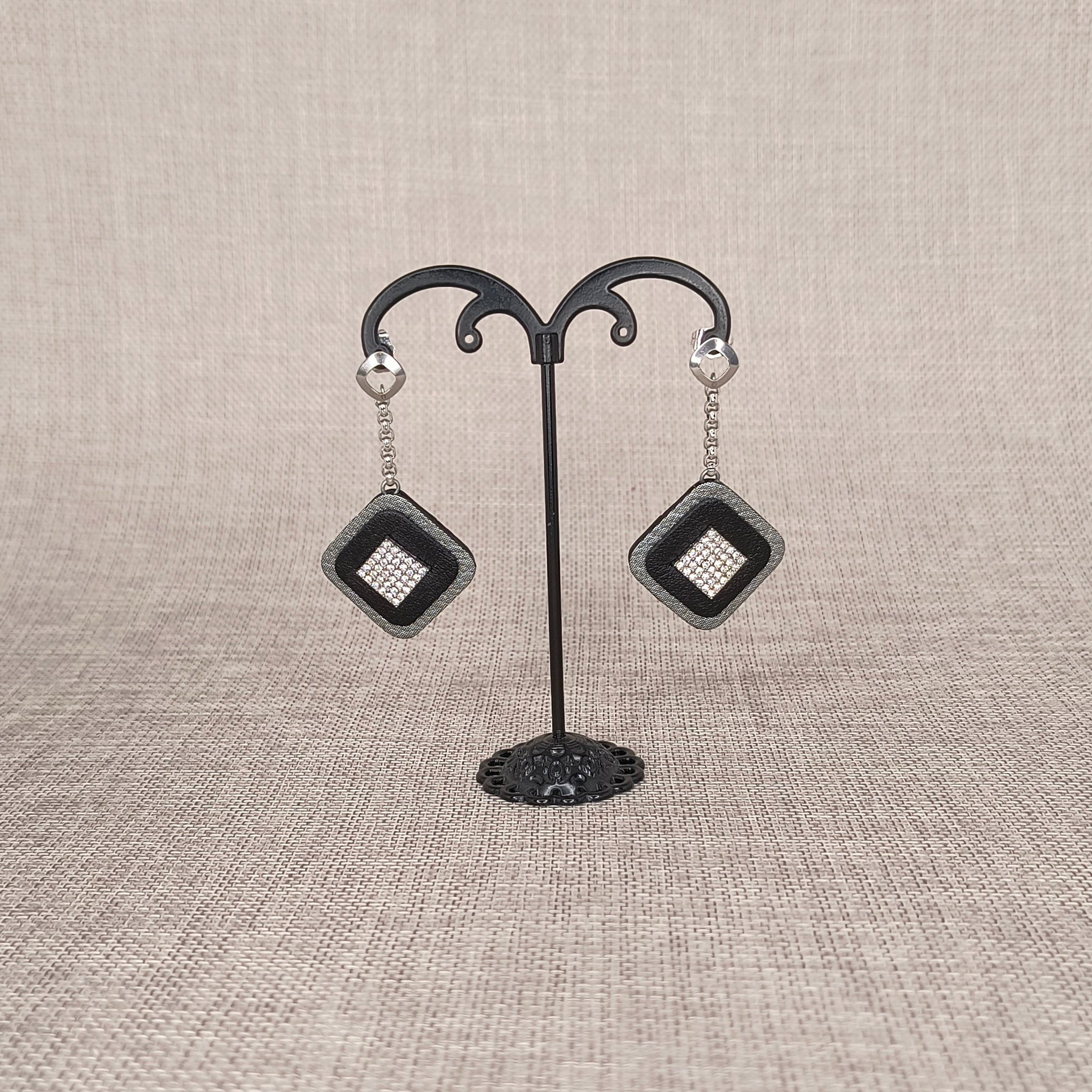 Rankų darbo auskarai pagaminti iš natūralios odos, nerūdijančio plieno detalių ir stiklo kristalo akučių.