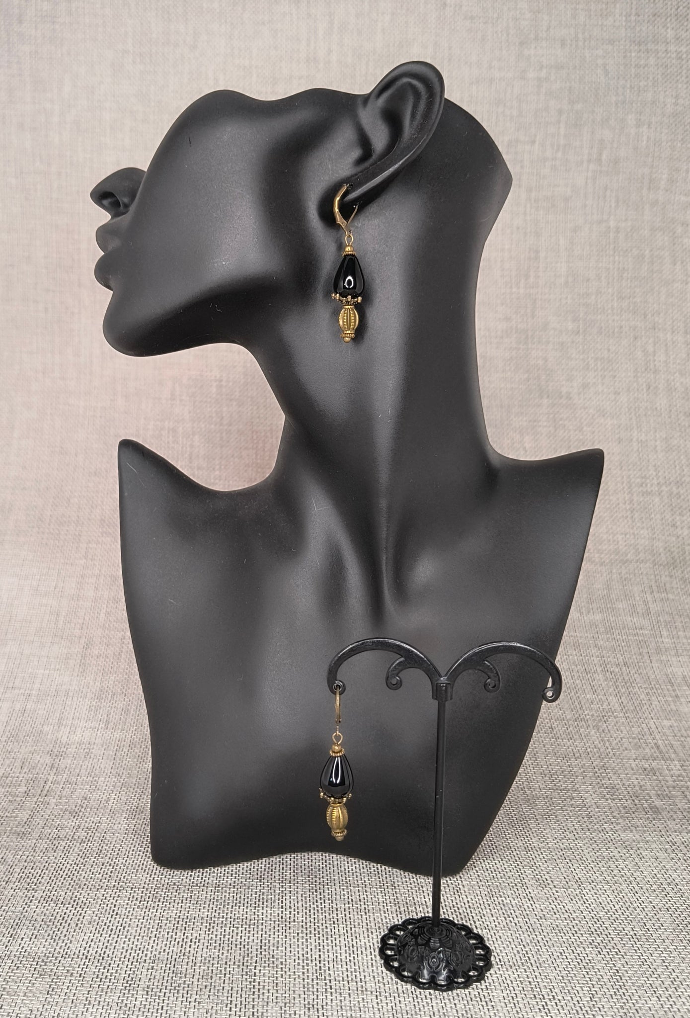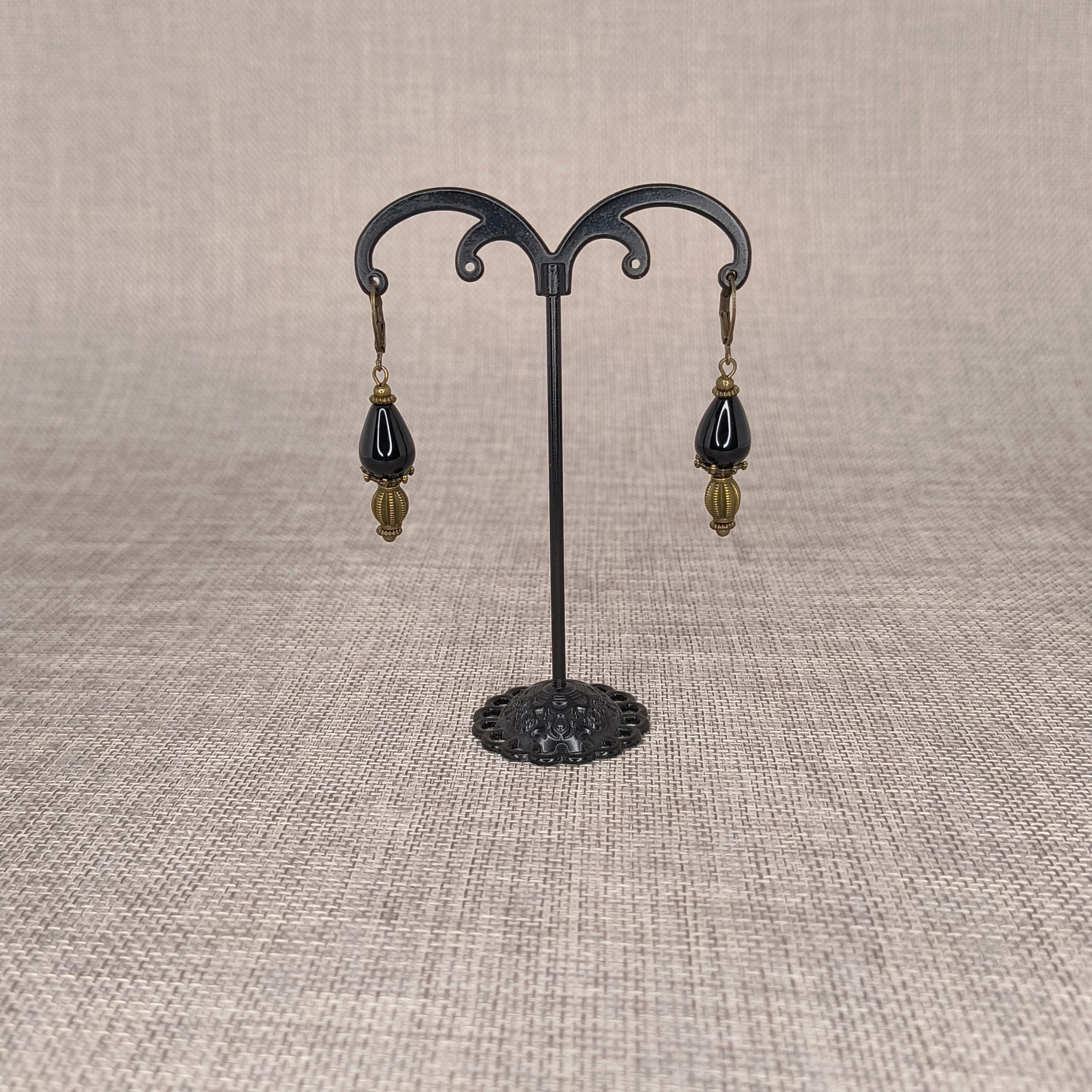 Rankų darbo auskarai pagaminti iš žalvarinių detalių ir agato akmens.